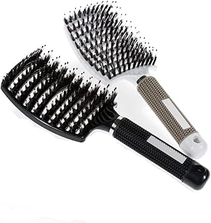 PetKids 2PCS Brosse Poil de Sanglier Brosse à Cheveux En Poils De Sanglier Pour styling et Démêler Les Cheveux Longs, Epais, Fins, Frisés Et Emmêlés Brosse-Araignée, Une Black et Une argentée