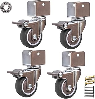 Support en U Chromé Roulettes Pivotantes,50mm Roulettes de Meubles en Caoutchouc,Pivotantes 360° Roues,Muet,Convient pour Lit Bébé,Charge 90KG,avec des Vis,4 Pièces (22mm,4 frein)