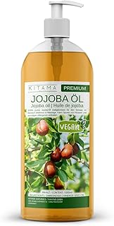 Kitama Huile de Jojoba pressée à froid 1l (1000ml) - 100% Pure - Naturelle & végétalien - soin pour Cheveux, Corps, Peau - Massage cosmétique - Jojoba Oil