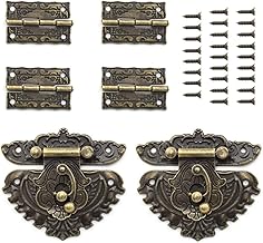 Loquet Boîtes Petite Taille Rétro Fermoir Métal Verrouillage Moraillon Vintage Boîte Porte Coque Coffre Fer Ensemble Loquet Tiroir Antique avec 80 Vis pour Armoire à Bijoux en Bois Décoratif (Bronze)
