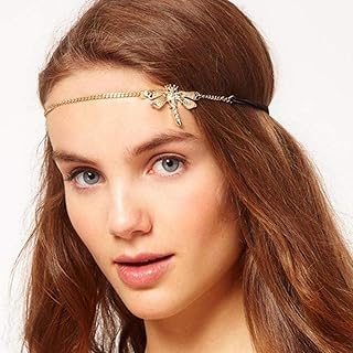 Jovono Boho Chaîne de tête avec motif strass libellule coiffe Accessoires de cheveux à la mode pour femmes et filles (Or)