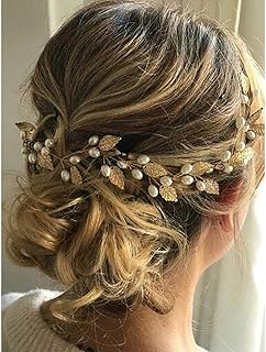Unicra Serre-tête de mariage avec perles et vignes en cristal pour femme et fille Doré