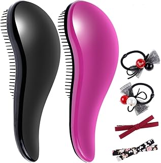 Anpro 2PCS Brosses à Cheveux Raides Crêpelés Brosse à Démêler Peigne Démêlage 2PCS Pinces Cheveux Nœud Deux Boucles 2PCS Elastique à Cheveux Pour Adultes et Enfants S'adapte aux Cheveux Secs Mouillés
