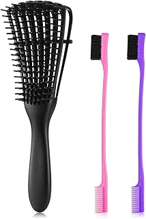 Sunnysam Ensemble de 3 pinceaux démêlants avec Brosse de Bord Double Face, démêlant pour Afro America Textured 3a à 4c Kinky Wavy pour Cheveux bouclés humides/secs/Longs épais (tête de Brosse lar